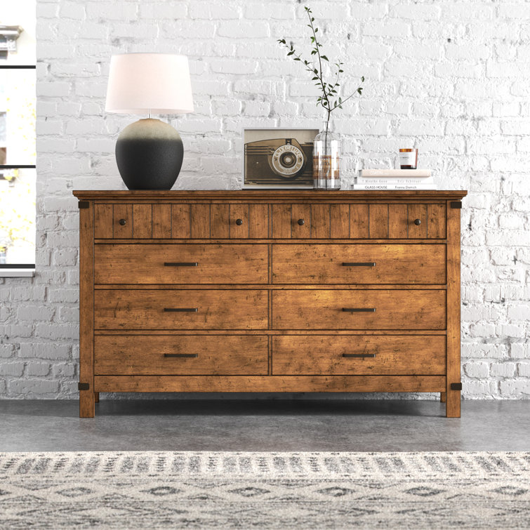 Pair this 8 Drawer. This 8-drawer double dresser features a clean streamlined style that complements a traditional or farmhouse design aesthetic. Its made from solid acacia wood with veneers in the.